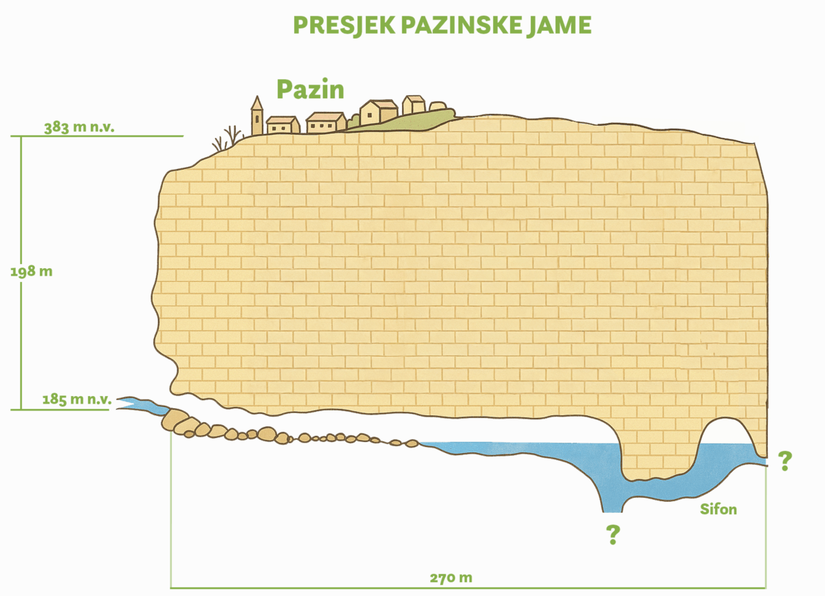Pogled u dubinu – presjek ponora kroz koji rijeka Pazinčica nestaje u podzemlju istarskog krša.